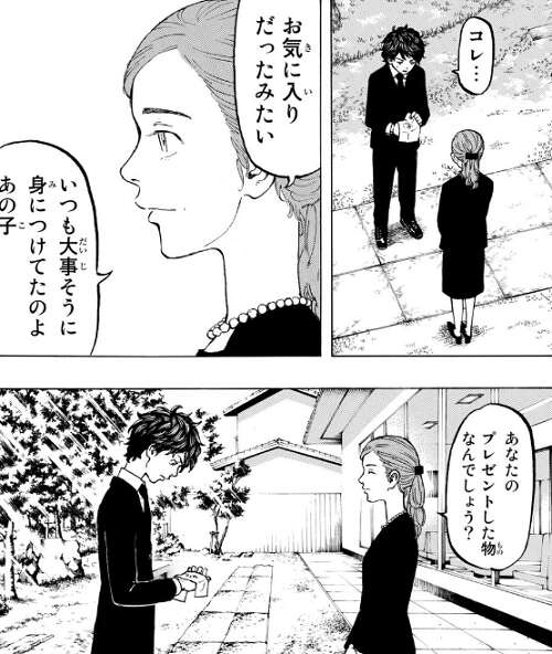 ヒナの葬式の場面から始まります。弟のナオトが号泣している所に、ヒナの母親が形見だと武道がプレゼントしたネックレスを渡します。ナオトが千堂敦について調べたところ、今回の敦は結婚していて子供もいるとのことです。ただその家族をダシに脅されていたのではないかとナオトは推測します。武道は過去の東卍のトップになって、東卍を潰し今度こそヒナを助けると決意します。