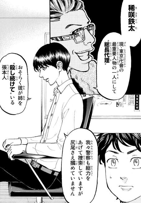 武道とナオトは現代のドラケンに会いに行きます。死を免れたドラケンは何故か刑務所に服役しています。ドラケンは殺人を犯していたのですが、それは稀咲鉄太の罠でした。ドラケンは武道に東京から離れろと助言し、暗にこのままだと稀咲に殺されると警告します。稀咲はマイキーの大事なものを全て奪いたいのだと言います。