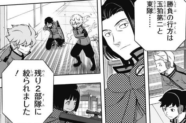 こうして勝負の行方は玉狛第2と東隊の2部隊に絞られます。