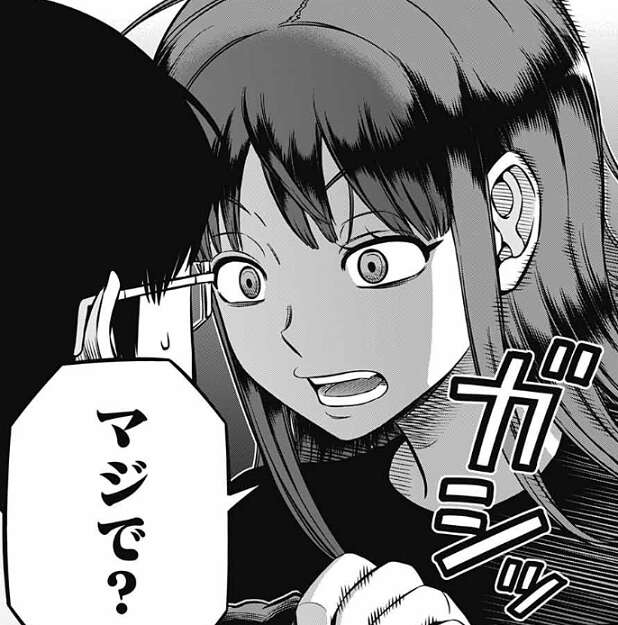 突然、ベッドで寝ていた香取が立ち上がり、マジで?と、香取は三雲に詰め寄ります。マジのマジ?絶対の絶対の絶対?と、香取はマジな顔で三雲を問い詰め、三雲は香取に圧倒されて、はい、と返事をしてしまいます。