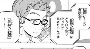 そして三雲が意見を出す番ですが、思いついたことはいくつかあるが、データが足りなくて心許ない、と言います。しかしデータはここにあるので全部だ、と隠岐が言うと、三雲は他所のチームに訊いてみようと思うと言い、諏訪が古寺にデバイスを使って連絡することになります。