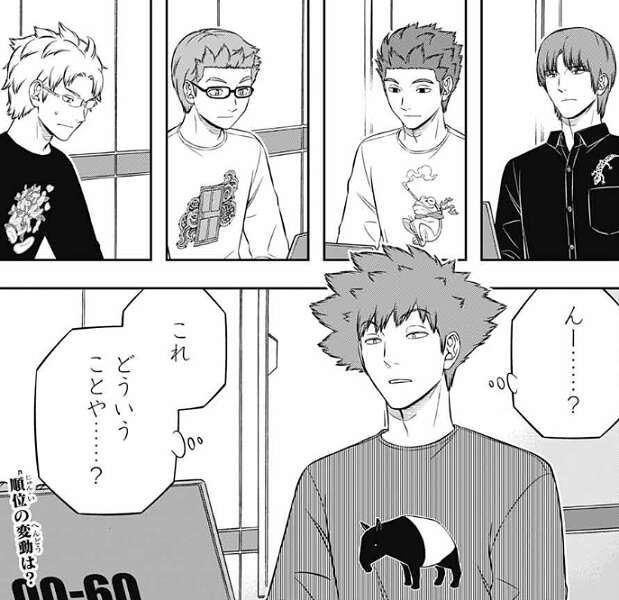 二宮8番隊の成績を見ると、9位で2勝4敗4引き分け、560点でした。最後に残った村上隊は古寺や水上から二宮隊のデータを貰ってなかったのも幸いしたようですが、雨取が最後の試合の前に元気を取り戻し自分の意見を言っていましたが、最後の試合は無事勝利したようです。もし最後の試合、あのまま負けていたら二宮隊は最下位だったそうです。二宮隊は前日1位だったので順位が最下位まで落ちると、特に雨取の精神的ダメージは大きかっただろう、と忍田や迅が話しています。