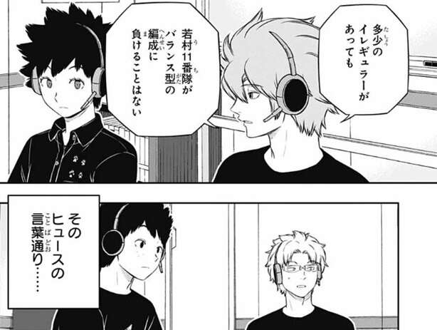 前回の記事はこちらです。各チームが特殊戦闘シミュに向けてどんなトリオン兵を作るか頭を悩ます中、若村隊のヒュースはある作戦を提案します。