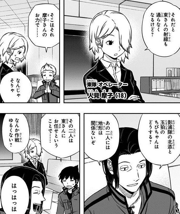 場面変わって東隊は、隊長の東を中心に次のB級ランク戦の作戦やMAP選びに関して、議論しています。
