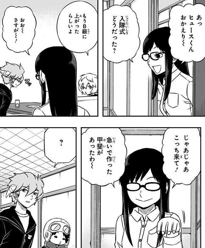 B級ランク戦ROUND6は終了しましたが、いよいよ玉狛第2にヒュースが合流しようとします。ヒュースは入隊後にポイントを荒稼ぎしていき、B級への昇格に近づいていきます。そしてC級だけでなく、B級以上の隊員から勝負を挑まれます。