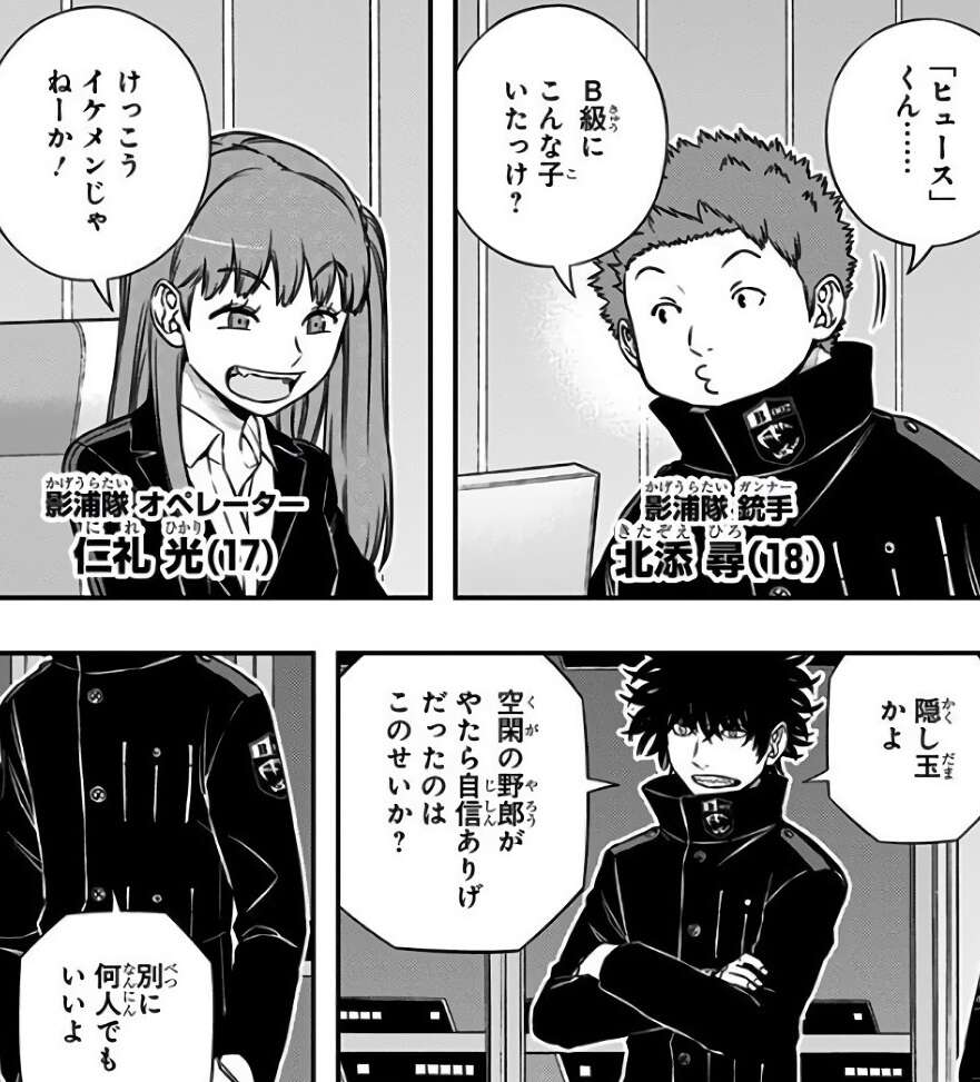 結局不安を払しょく出来ないまま本部に移動して、B級ランク戦が始まろうとします。ランク戦前の時間では、玉狛第2がメンバーを一人増やしたことが話題になっています。