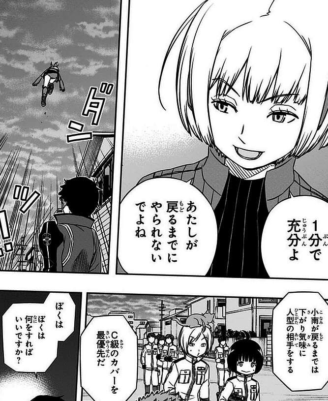 アフトクラトルの大規模侵攻の目的がC級隊員の捕獲と判明し、C級隊員をカバーしつつ三雲や玉狛第1のチームはボーダー基地に急ぎます。