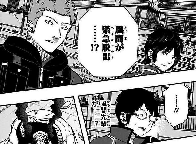 さらにエネドラに挑発され、風間隊はなおも戦闘を継続しようとしますが、風間の言葉に思いとどまり、自分で緊急脱出します。
