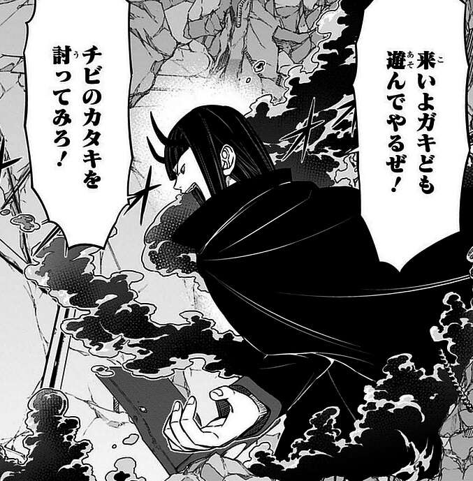 ランバネインの高い火力攻撃に出水、米屋、緑川は分断され、一人ずつ撃破されそうになり、まず緑川が狙われます。しかし、緑川は空閑との個人ランク戦の反省を活かして、ランバネインの片足を削って、ランバネインを追い詰めます。ランバネインも冷静に敵を分析し、今度は飛行しながら反撃を行い始めます。
